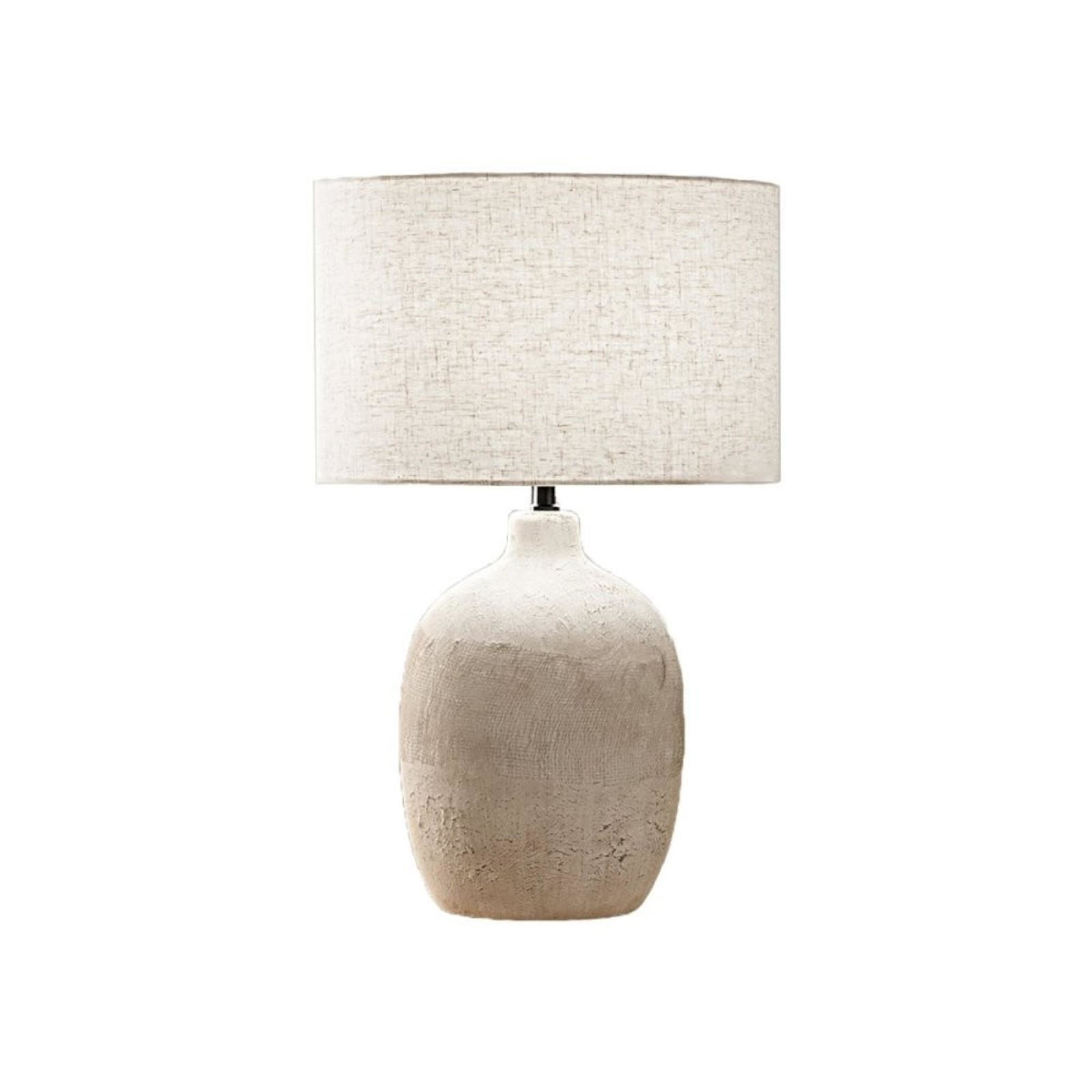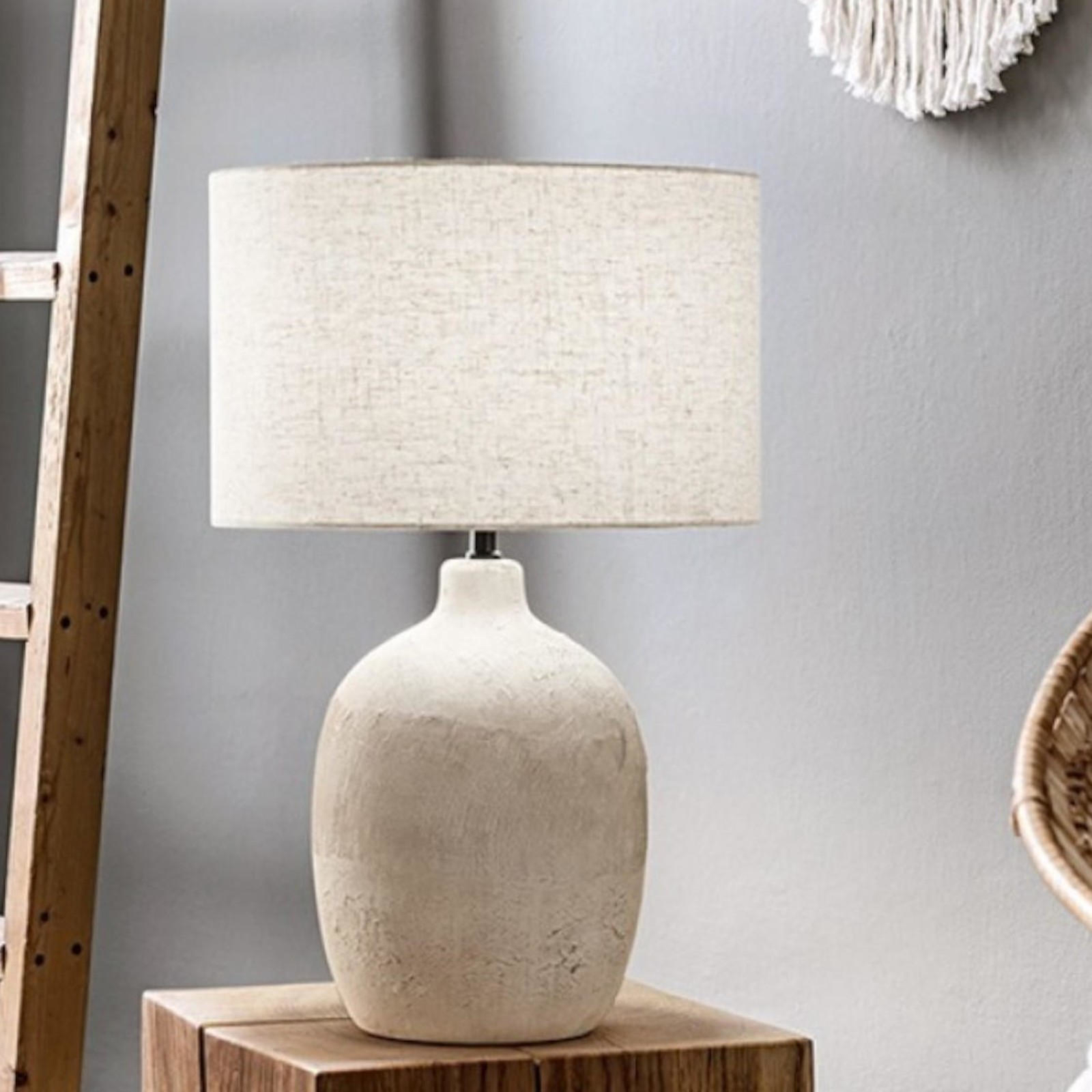Lampada da tavolo tribale perenz ceramica bianco e beige paralume tessuto