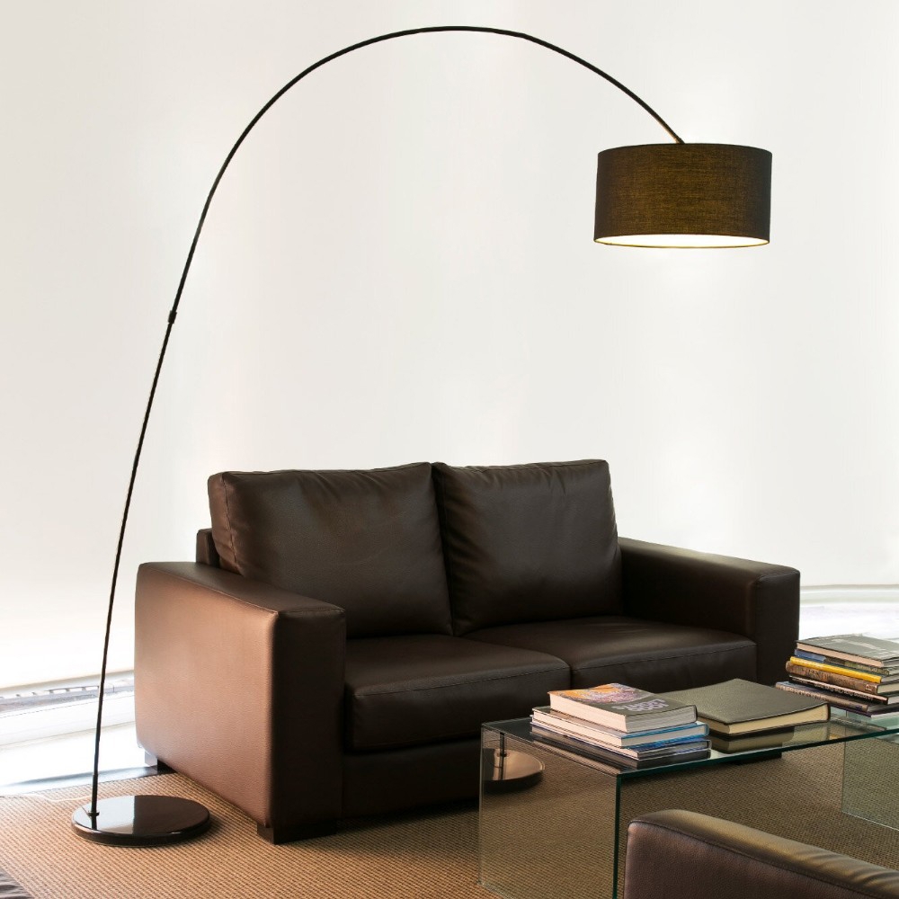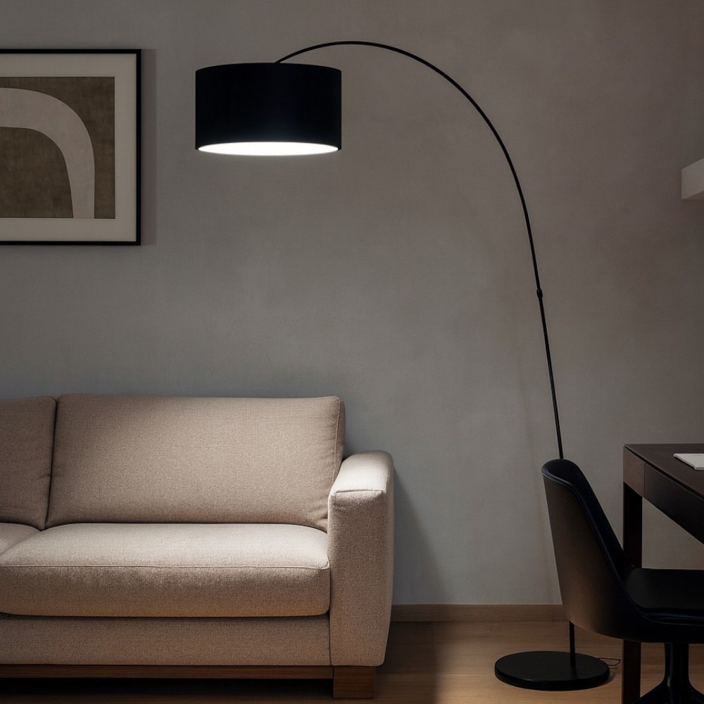 Lampada ad arco bianca moderna con paralume cilindro tessuto
