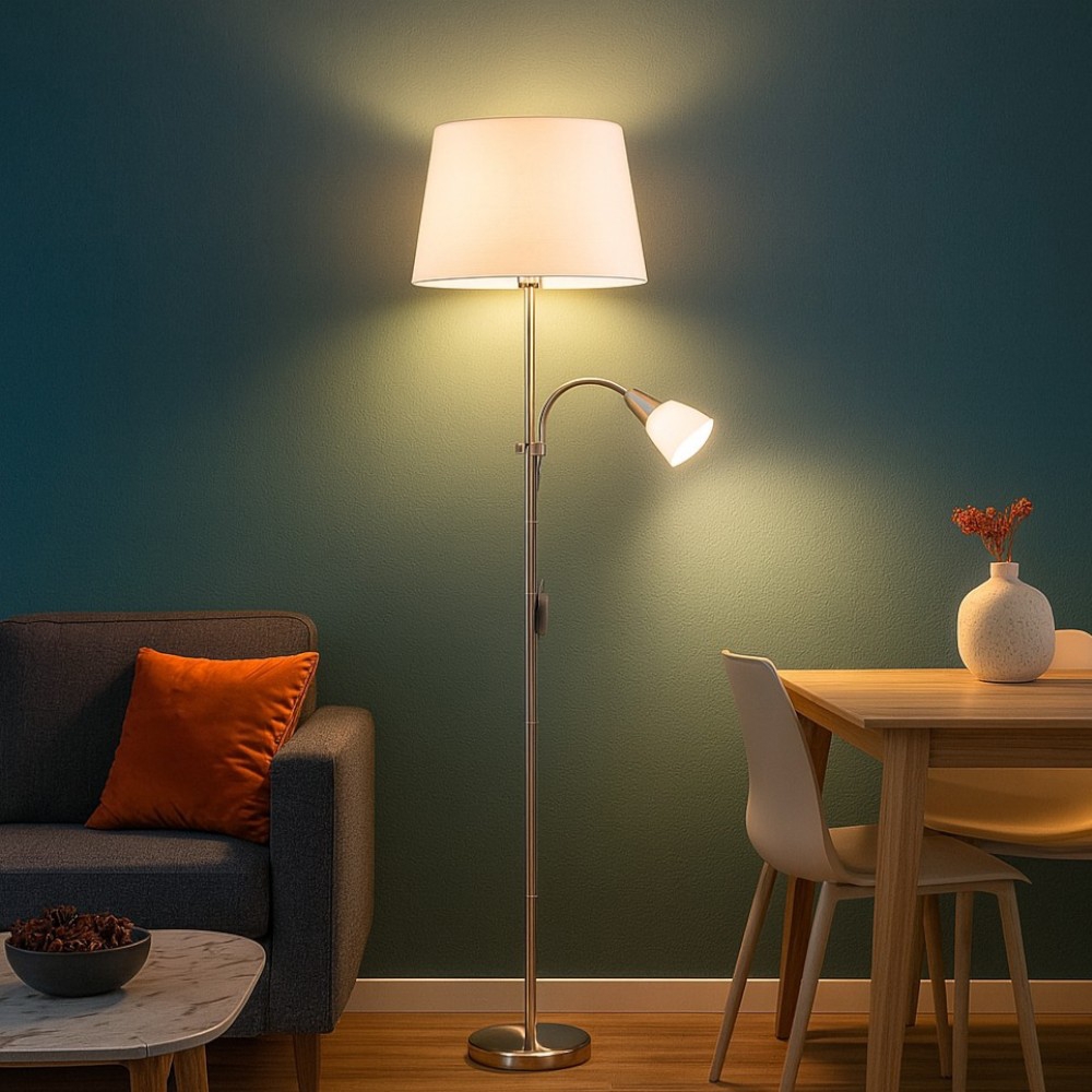 Piantana per salotto contemporaneo paralume tessuto grigio
