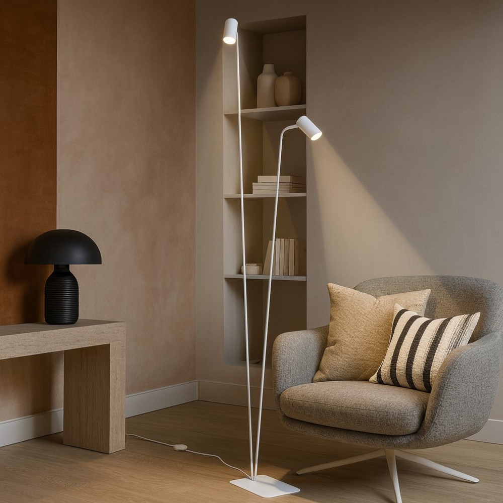 Piantana per salotto moderna nera due luci le dimmerabile 3000k