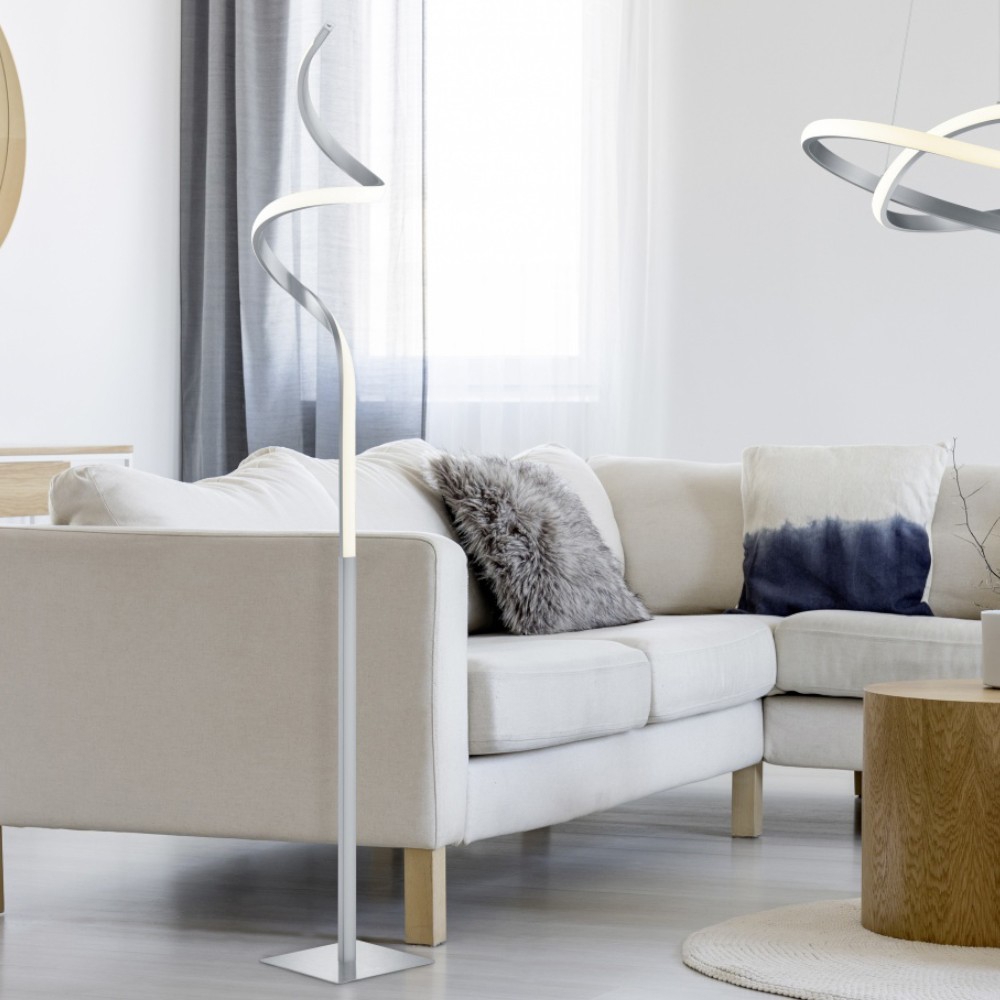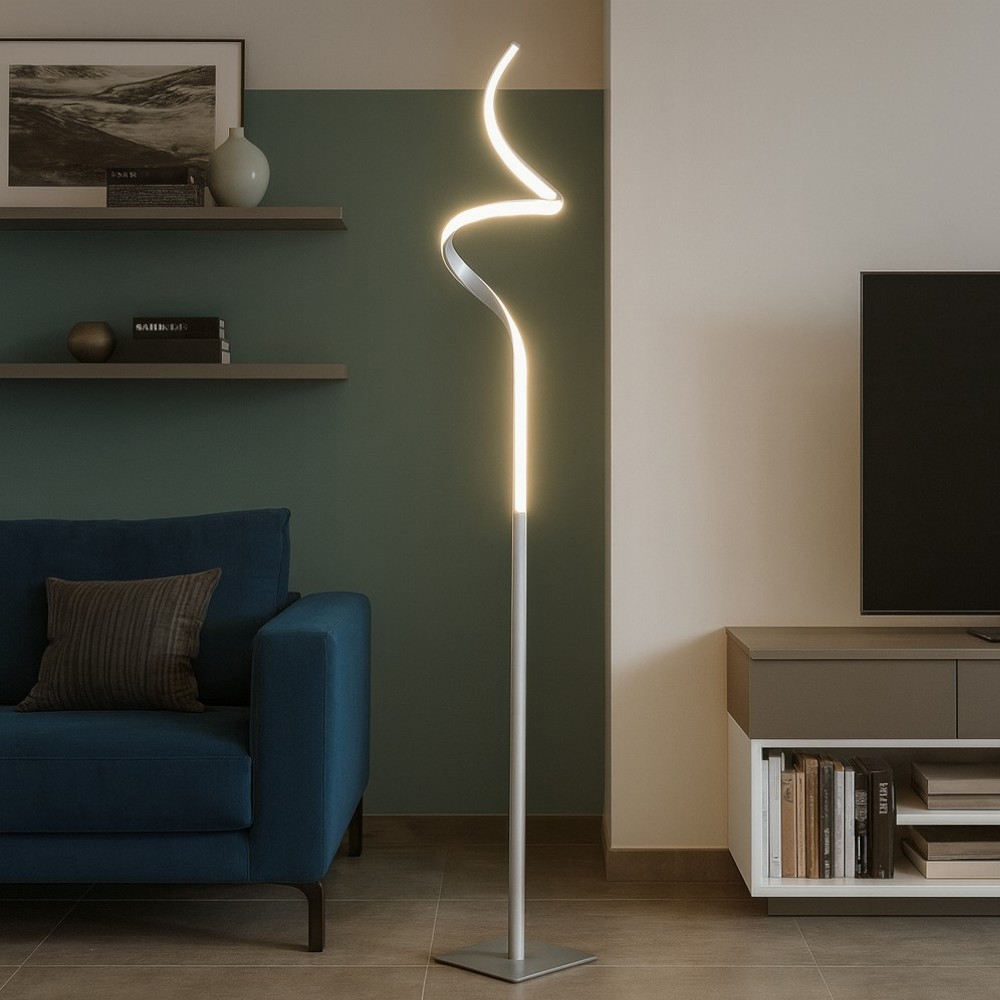 Unendo minimalismo ed efficienza, questa lampada da terra si distingue per la sua linea sinuosa che si sviluppa verso l'alto, trasformandosi in un complemento d’arredo dinamico e scultoreo. Il colore grigio, simbolo di versatilità ed eleganza, le permette di integrarsi facilmente in qualsiasi ambiente, mentre la sua leggerezza strutturale consente di spostarla con facilità, creando nuovi punti luce dove più necessario. Grazie alla funzione touch integrata, l’accensione e la regolazione dell’intensità luminosa diventano intuitive e pratiche, riflettendo la modernità delle soluzioni smart. La luce LED dimmerabile da 3000K genera un'illuminazione calda e accogliente, ideale sia come luce principale in soggiorni e camere da letto, sia come luce d’atmosfera o notturna.
