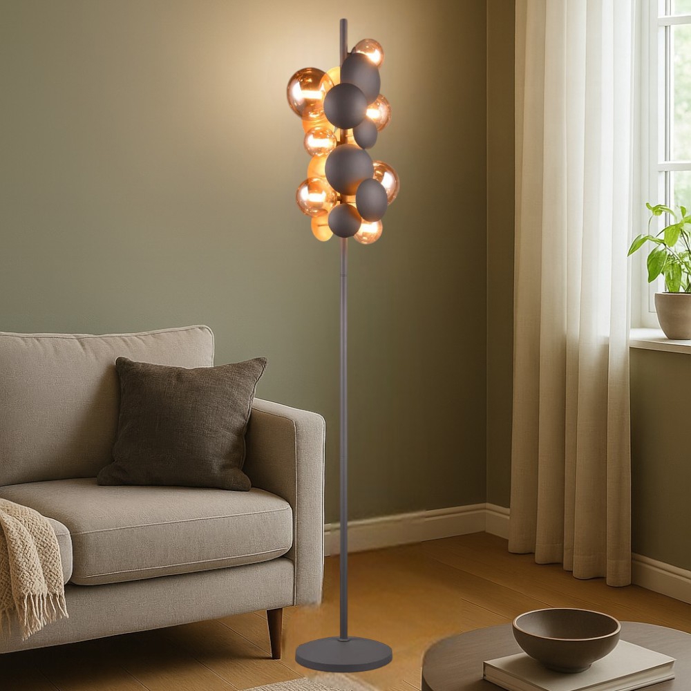 Plafoniera per soggiorno moderna antracite sfere vetro ambra