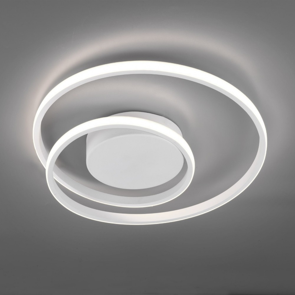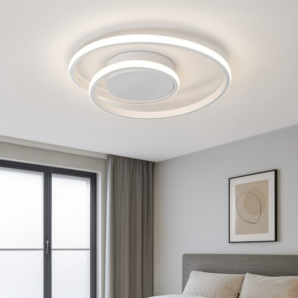 Questa plafoniera moderna unisce design contemporaneo e funzionalità, donando un tocco di stile a qualsiasi ambiente. Con la sua forma rotonda e il profilo elegante, è ideale per soggiorni, uffici e sale da pranzo. Realizzata in metacrilato satinato e metallo bianco opaco, offre varianti in nero e titanio per adattarsi a diversi stili. La luce calda a 3000K crea un'atmosfera accogliente, illuminando fino a 15 metri quadri. La funzione dimmer integrata permette di regolare l'intensità con facilità. Grazie alla sua efficienza e alla durata di 30.000 ore, garantisce un'illuminazione sostenibile e durevole.
