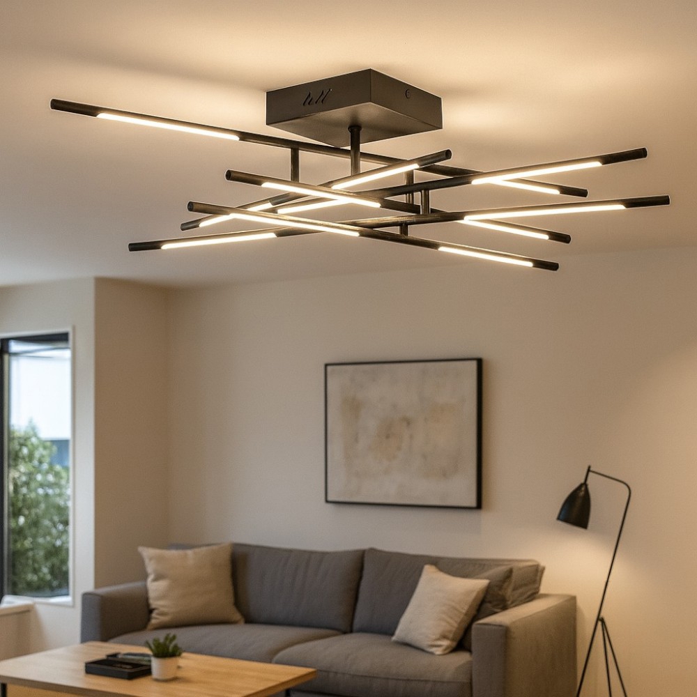 Plafoniera bacchette led 30w 3000k moderna nera per soggiorno