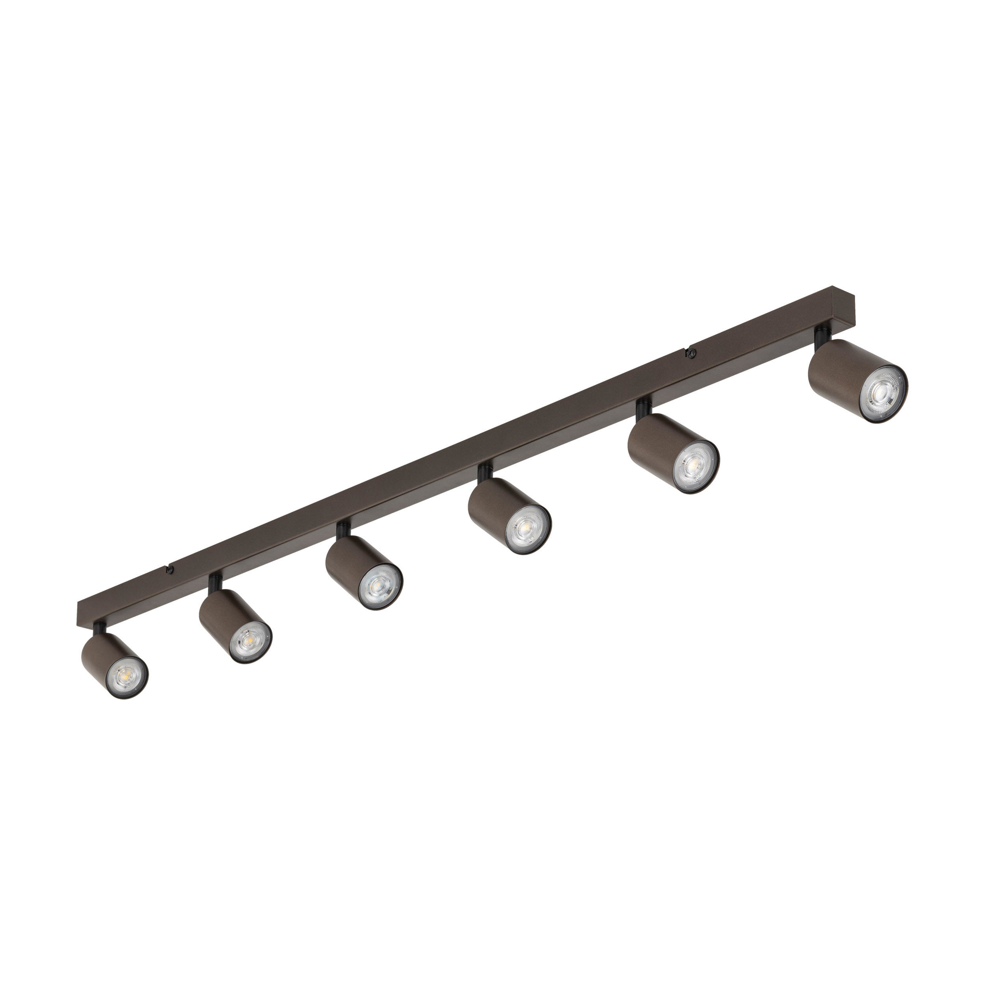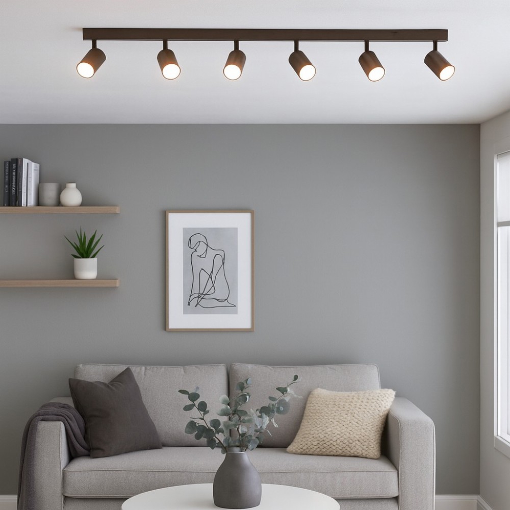 La plafoniera in alluminio marrone con sei faretti orientabili è una soluzione versatile e funzionale per la cucina. Il suo design lineare e moderno si adatta facilmente a diversi ambienti, come cabine armadio, cucine, camere da letto, uffici o negozi, combinando estetica e praticità. I faretti cilindrici, completamente regolabili, permettono di dirigere la luce dove è più necessaria, migliorando la visibilità e valorizzando specifiche aree. La compatibilità con lampadine GU10 LED (non incluse) consente di scegliere il livello di luminosità e la tonalità di luce desiderata, garantendo un consumo energetico ridotto e una durata maggiore. La finitura marrone, elegante e neutra, rende questa plafoniera ideale sia per ambienti moderni che per contesti più classici. Il grado di protezione IP20 la rende perfetta per utilizzi interni, in spazi asciutti.