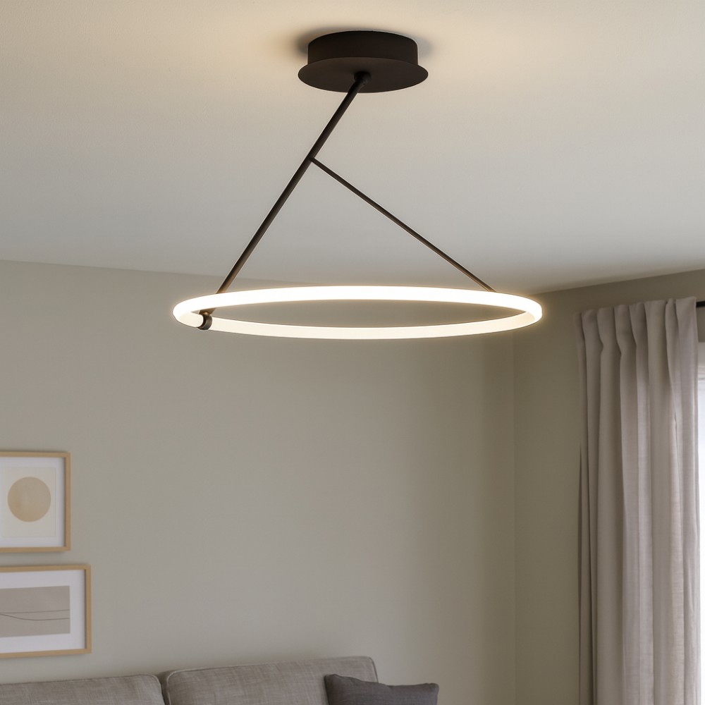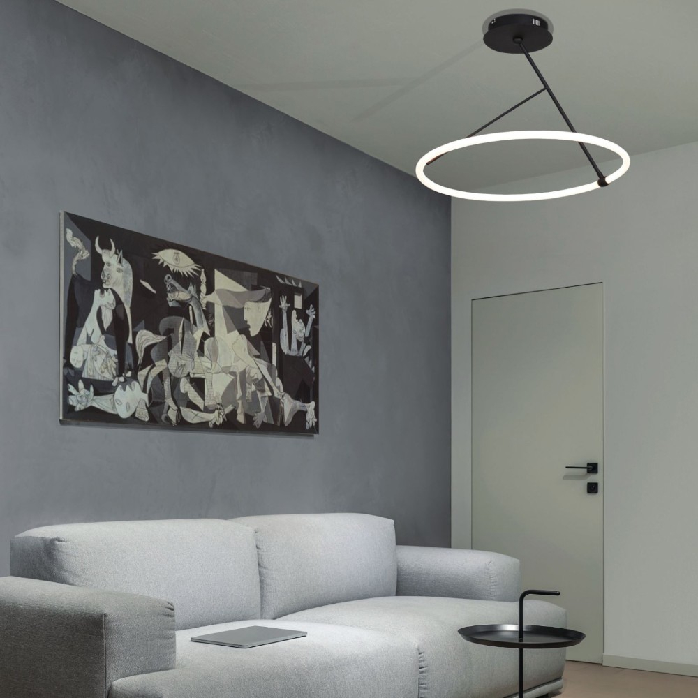 Plafoniera tonda nera 48cm led 40w dimmerabile per cucina moderna