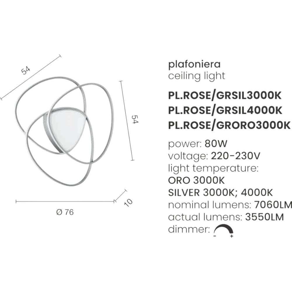 Plafoniera led75w 3000k moderna rose md silver ondaluce