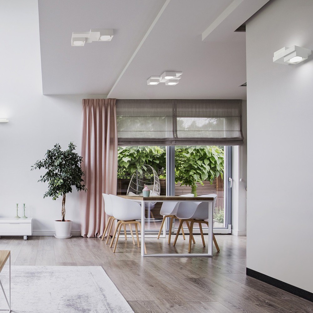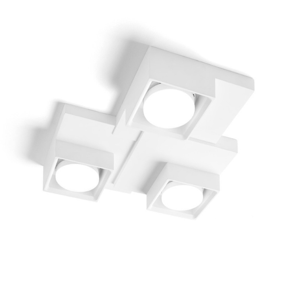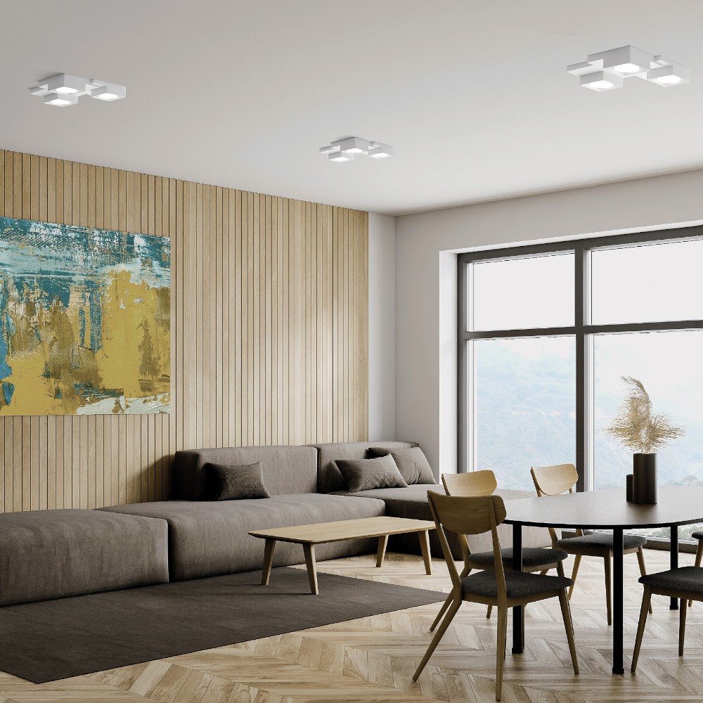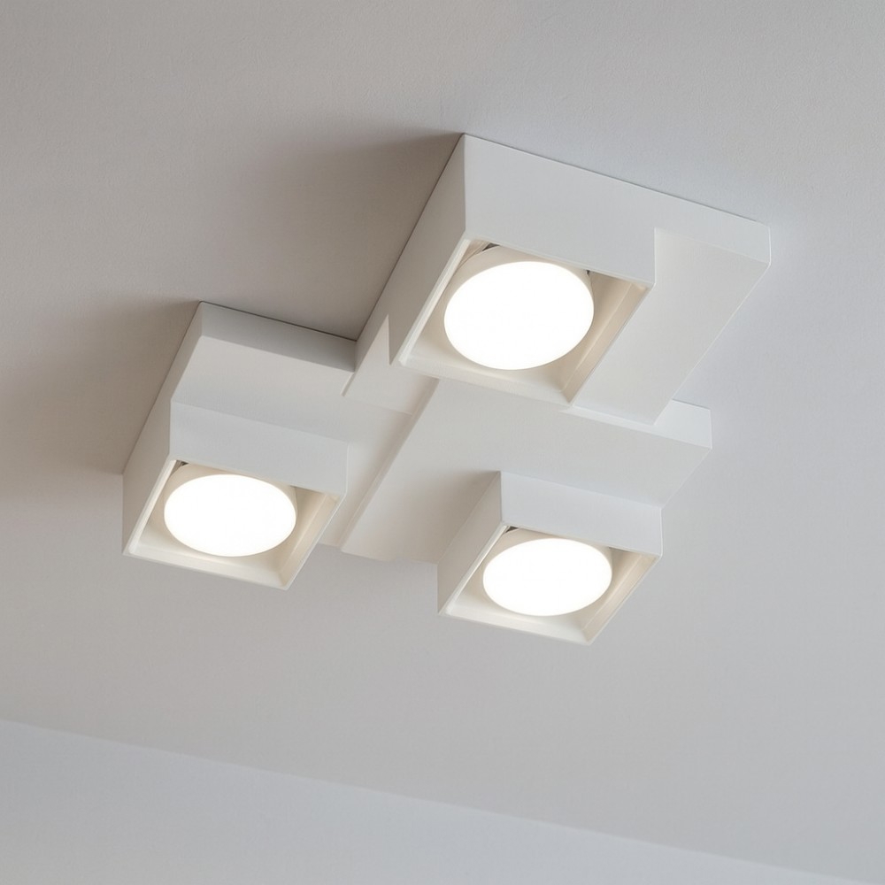 La plafoniera moderna per cucina della collezione Sibari di Sforzin Illuminazione, caratterizzata da una composizione di tre quadrati in gesso bianco di alta qualità, è una soluzione ideale per un’illuminazione diffusa.