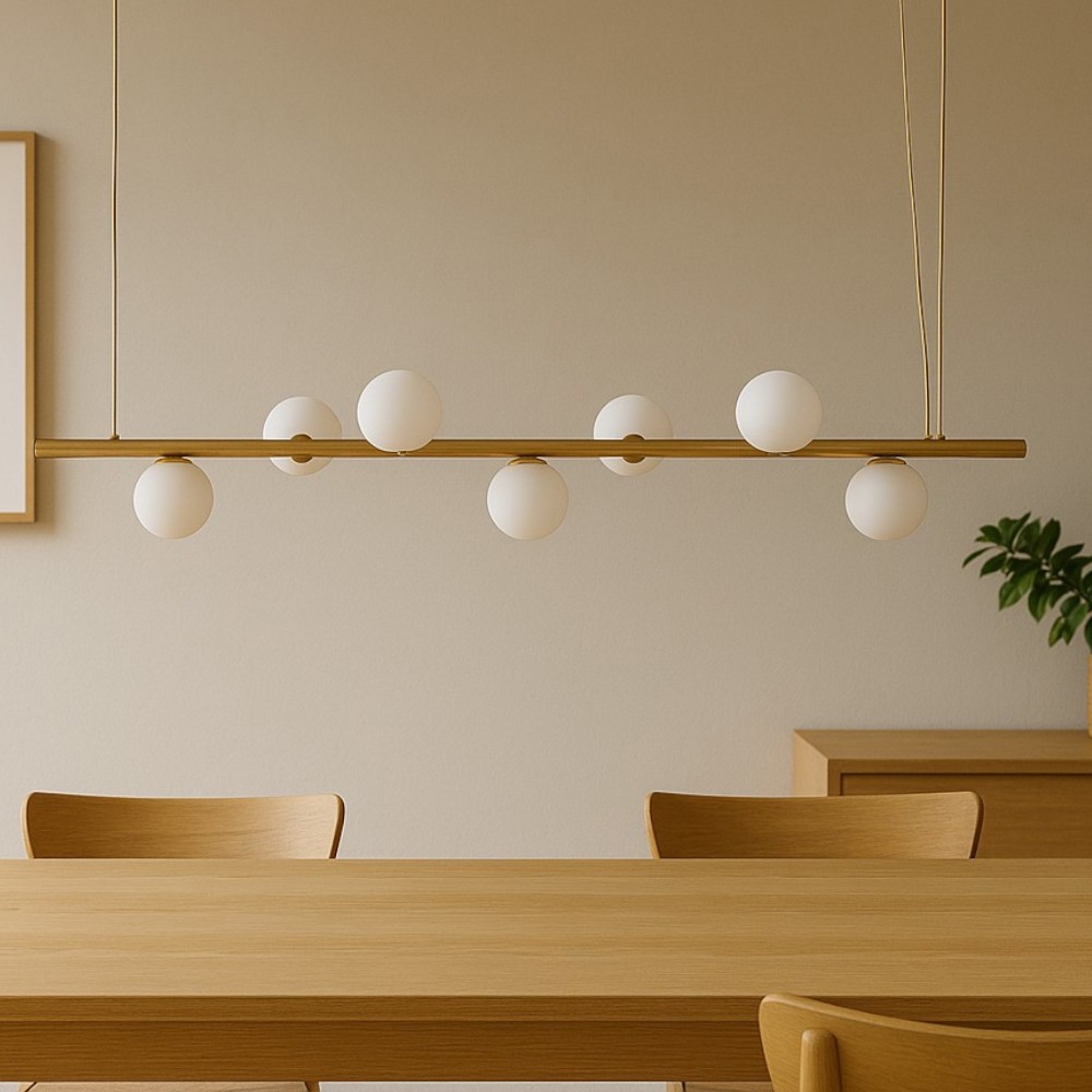 Lampadario oro sfere vetro bianco per soggiorno moderno