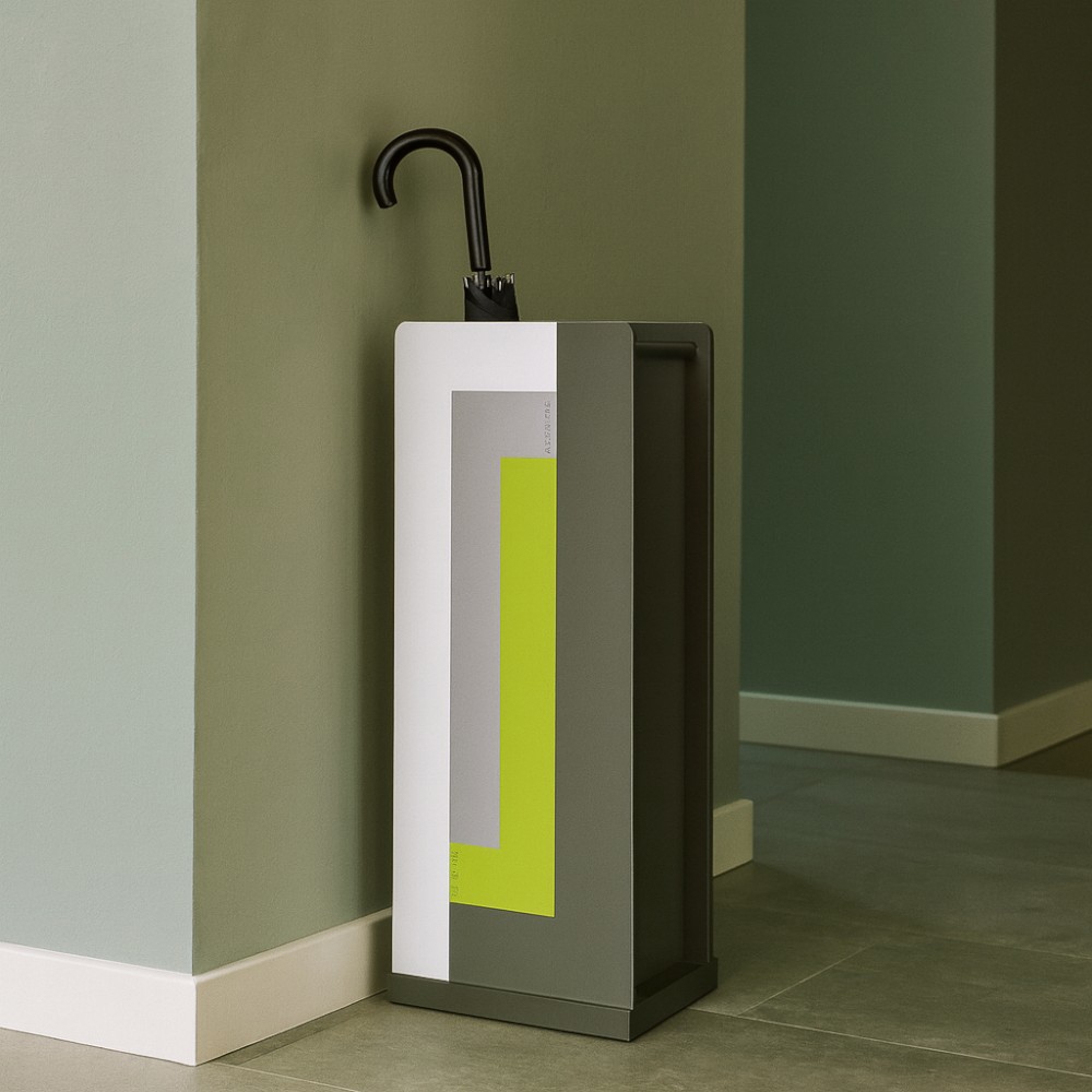 Portaombrello moderno da terra design legno colore rosso rubino grigio