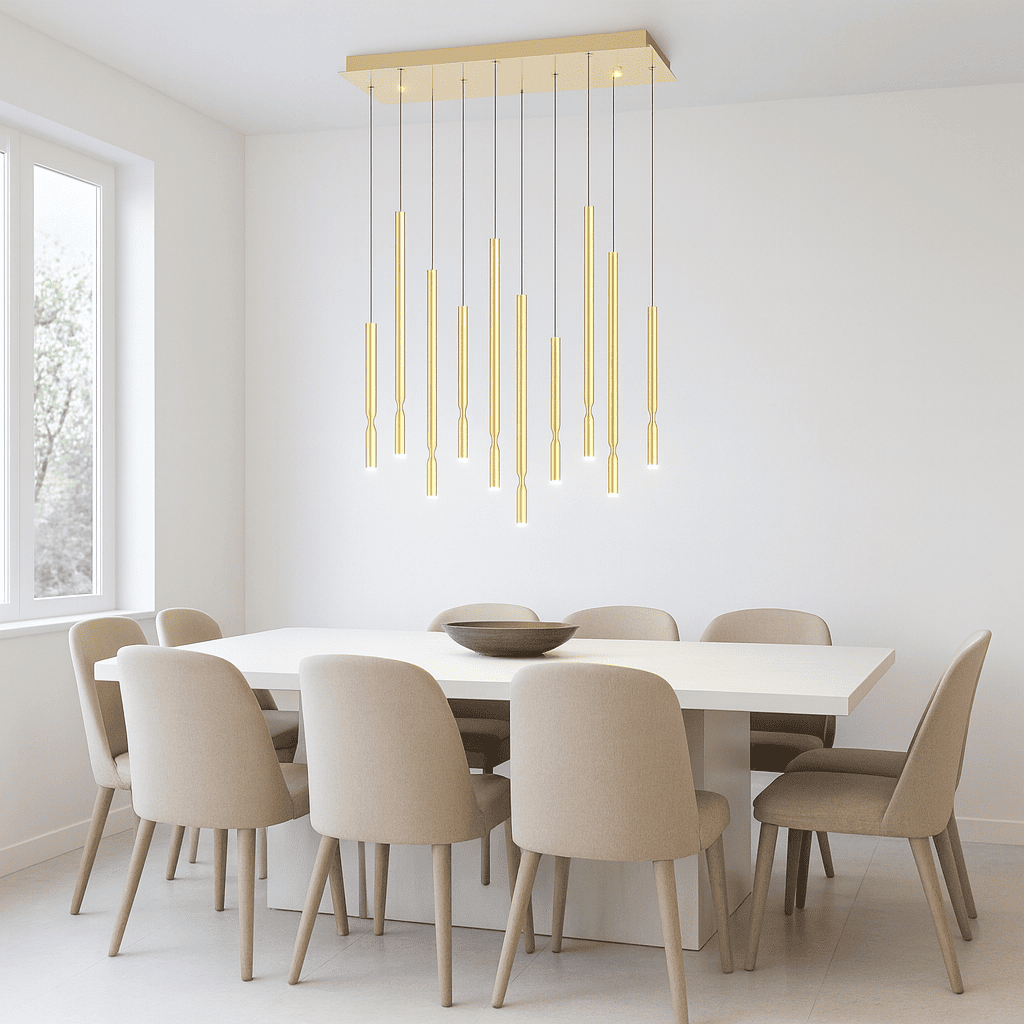 Lampadario moderno 12 luci led 3000k ondaluce so tubic oro dimmerabile