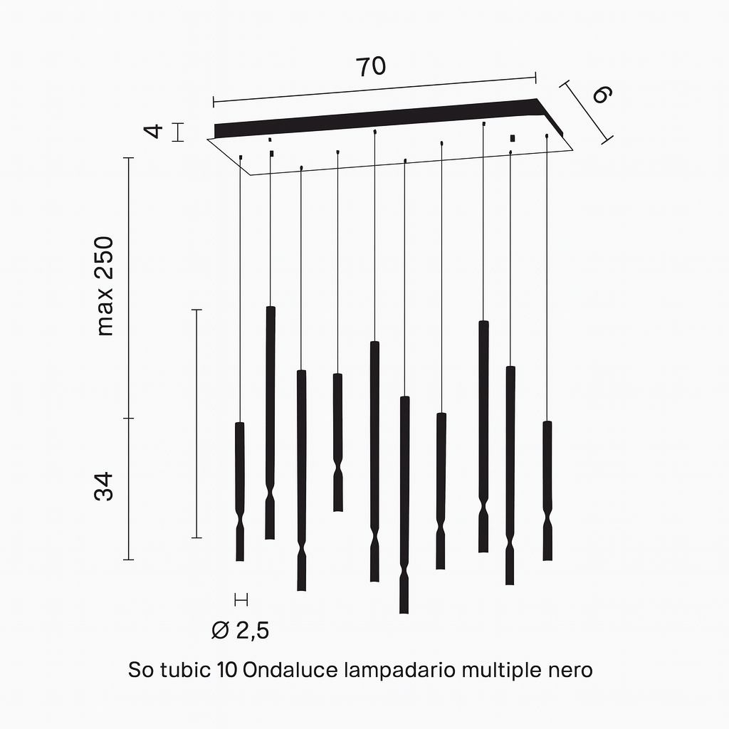 So tubic 10 ondaluce lampadario multiple nero moderno