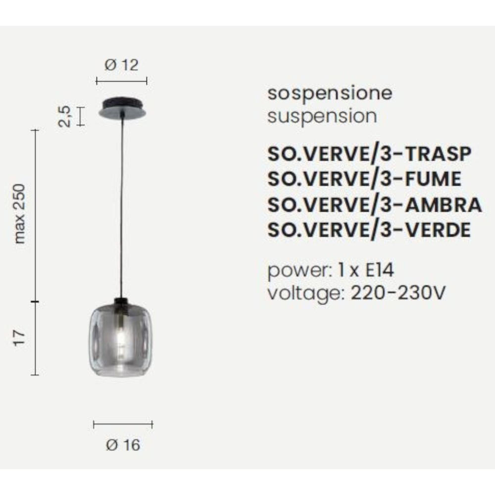 Ondaluce so verve 1 ambra lampada a sospensione vetro con base/nero
