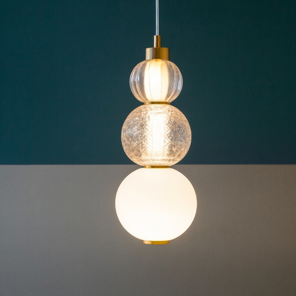 Lampada a sospensione per penisola cucina moderna sfera vetro trasparente