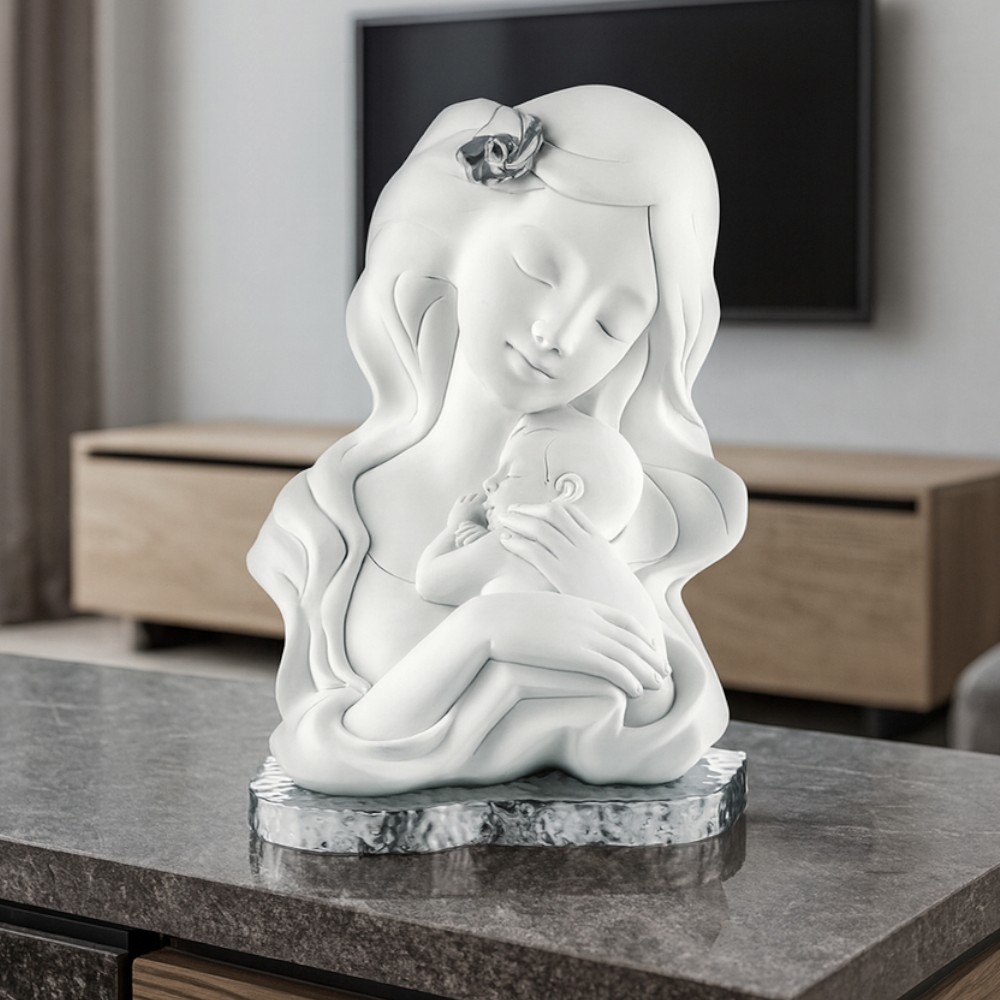 Scultura da tavolo moderna viso 45cm marmorino design bianco oro
