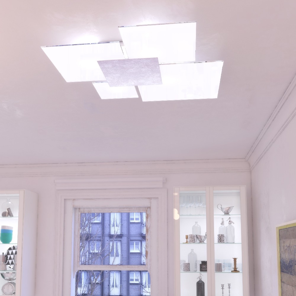 Toplight upgrade plafoniera vetro bianco foglia argento