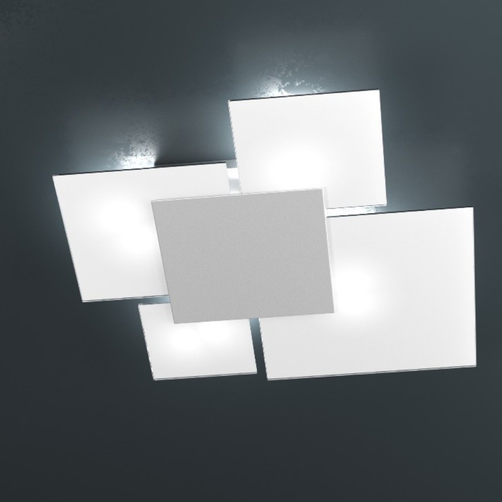 Plafoniera per cucina moderna vetri bianco placca grigio