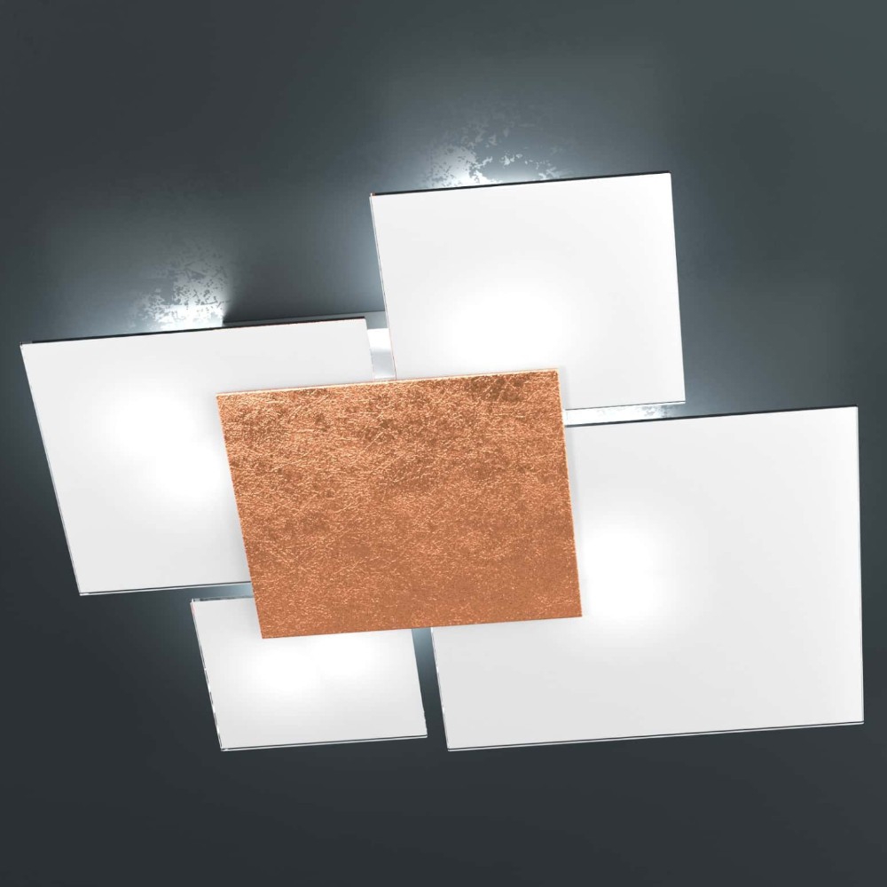 Toplight upgrade plafoniera vetro bianco foglia argento