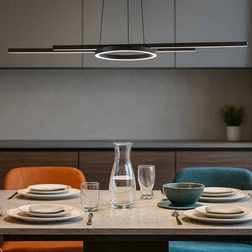 Lampadario per tavolo da pranzo cucina 7 luci led 3000k vetro fume'